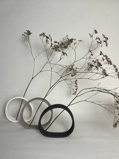 This collection consists of hand-molded stoneware pieces characterized by circular shapes without a beginning nor end.